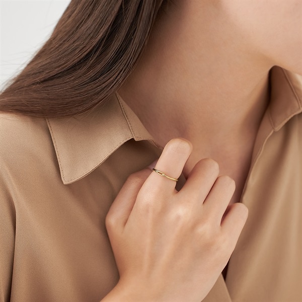 流れるラインが指になじむリング。またイエローゴールドの華やかな色味が相まって上品な印象に。ギフトにもご自身へのご褒美にもおすすめです。※ボリューム(幅)のあるリングは、通常より着用時にサイズが小さく感じる場合がございます。