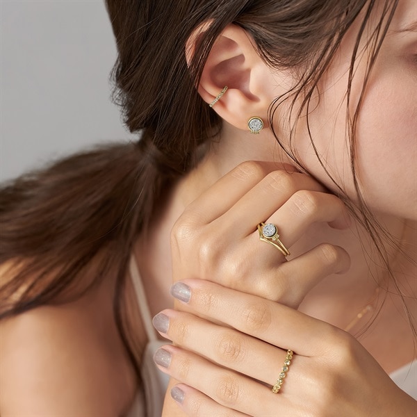 《I feel happy whenever I see you.》 輝く手元を見ただけで私は幸せになれる。 ふとした瞬間に、心を踊らせてくれるコレクション。シルバー色が煌めくドルジ―アゲートが印象的なリング。横に添えているトパーズのみずみずしい輝きが、ドルジーアゲートの繊細な美しさを引き立てます。1本で華やかな手元に。ドルジーアゲートは「お守りの石」「癒しの石」と言われています。コーディネートの主役におすすめです。※天然石・天然素材を使用しているため、実際の色味や風合いが異なる場合がございます。※ボリューム(幅)のあるリングは、通常より着用時にサイズが小さく感じる場合がございます。The Tidalコレクション一覧はこちら >こちらのジュエリーをご購入のお客さまに、The Tidal オリジナルネイルポリッシュをプレゼント。 [数量限定] なくなり次第終了 ※ショッピングバッグ内にノベルティの画像が表示されていない場合、ノベルティのお取り扱いは終了しております。