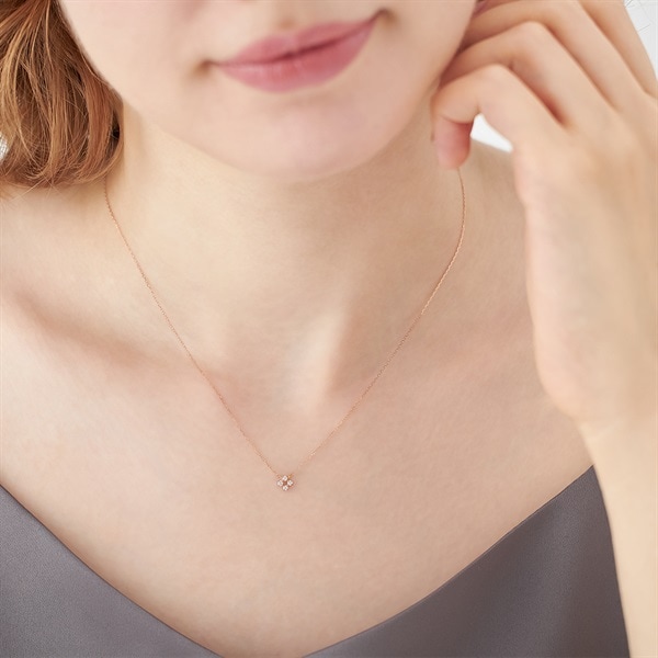 ホリデーシーズンに向けて華やかなスタイリングが叶うシリーズ。 キュービックジルコニアをお花のように留めたネックレス。中央を透かしにすることで軽やかな印象に仕上げました。胸元でさりげなく輝く、デイリーにも使いやすいアイテムです。