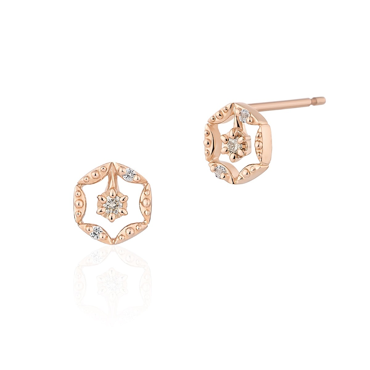 Holiday Collection一覧はこちら >〈Lucentveil〉静寂に包まれた冬の朝、透き通る光と雪の煌めきを纏ったホリデーコレクション。朝の日差しを浴びて輝く、透き通るようなダイヤモンドをセンターにセッティングしたK10ピンクゴールドのピアス。雪のやわらかさを表現した六角形のシルエットは空気を纏うような軽やかな透かしのデザインがポイント。周りにはホワイトトパーズを散りばめ透明感のある輝きをプラスしました。※天然石・天然素材を使用しているため、実際の色味や風合いが異なる場合がございます。[シルバーグレーの霜のような光沢のあるベロアの数量限定ケース付き] なくなり次第終了※ショッピングバッグ内にて2種類のなかからケースをご選択ください。 ご選択いただけない場合は表示されているケースでのお包みとなります。※ショッピングバッグ内の画像が限定ケースではない場合、限定ケースのお取り扱いは終了しております。
