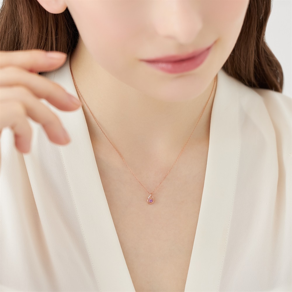 2月の誕生石、アメシストをセッティングした数量限定の誕生石コレクション。 アメシストとキュービックジルコニアを留めたしずくモチーフのネックレス。 滴り落ちるしずくのフォルムが、首周りをすっきりと見せてくれます。 2月の誕生石であるアメシストは誠実な愛をもたらすといわれ、淡い紫色が胸元を華やかに彩ります。シンプルなデザインでどのようなテイストのファッションにも合わせやすく、大切な方へのプレゼントとしてもおすすめです。 ※天然石・天然素材を使用しているため、実際の色味や風合いが異なる場合がございます。 [数量限定ケース付き] なくなり次第終了※ショッピングバッグ内の画像が限定ケースではない場合、限定ケースのお取り扱いは終了しております。