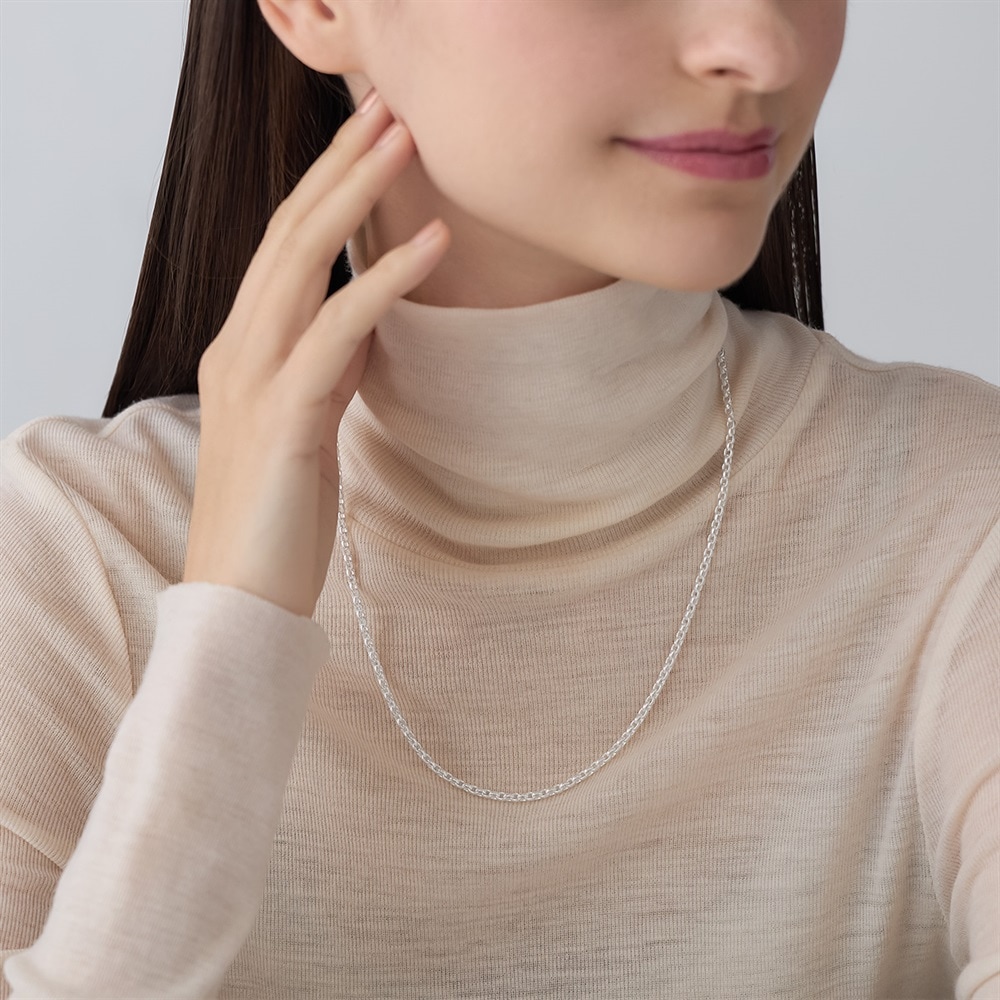 【CHAIN】 首元に程良いアクセントを与えるチェーンネックレス。いつものコーディネートになじむ丸みを帯びたチェーンはひとつ身に着けるだけでこなれた印象に。シルバー本来のナチュラルな風合いを活かしたノーコーティング仕様です。