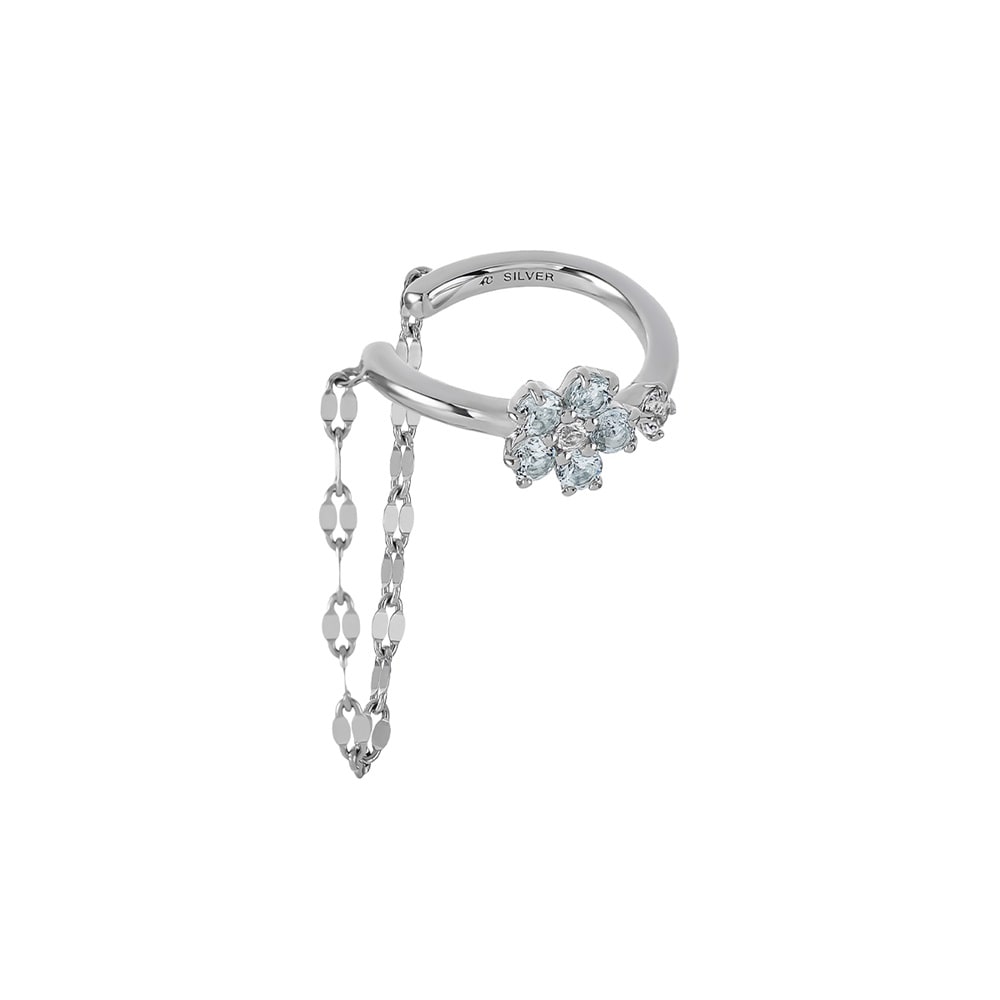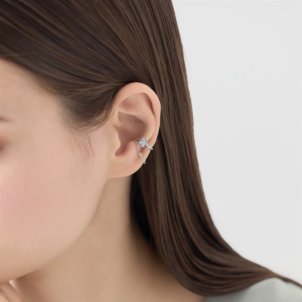 小さく可憐な花々を表現したPetite Bloomsコレクション。 アクアマリンとホワイトトパーズでネモフィラの花を表現したイヤーカフ。 淡いブルーのアクアマリンと柔らかい輝きのホワイトトパーズが、耳元に可憐さと凛とした透明感を与えます。角度をつけることで少し動きのあるデザインに。プラチナコーティングのリュクスな輝きもポイントで、デザインチェーンが揺れる華やかなイヤーカフです。 ※天然石・天然素材を使用しているため、実際の色味や風合いが異なる場合がございます。