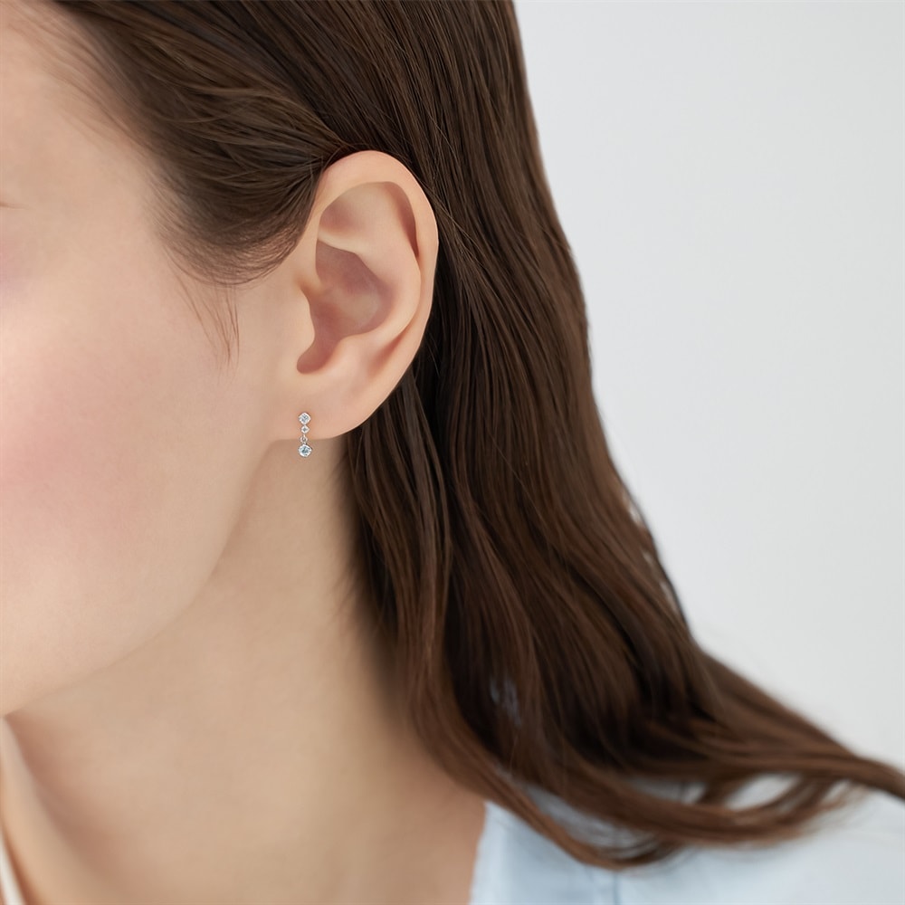 3月の誕生石、アクアマリンをセッティングした数量限定の誕生石コレクション。 アクアマリンとキュービックジルコニアを縦に連ねた表情豊かなピアス。 小ぶりながら軽やかに揺れるアクアマリンが耳元を可憐な印象に仕上げてくれます。 3月の誕生石であるアクアマリンは純粋な心と癒しをもたらすといわれ、淡い水色が胸元をみずみずしく彩ります。シンプルなデザインでどのようなテイストのファッションにも合わせやすく、大切な方へのプレゼントとしてもおすすめです。 ※天然石・天然素材を使用しているため、実際の色味や風合いが異なる場合がございます。 [数量限定ケース付き] なくなり次第終了※ショッピングバッグ内の画像が限定ケースではない場合、限定ケースのお取り扱いは終了しております。