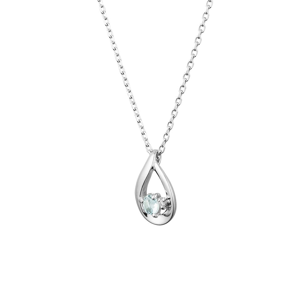 4℃×日比谷花壇 プリザーブドフラワーBOXをひとつにした特別なセットです。 ジュエリーケースの周りには、色あせないプリザーブドフラワーをあしらい、その中央でジュエリーが上品に輝くデザイン。母の日やお誕生日などの特別なプレゼントに間違いない、これひとつで想いが完成するギフトです。変色しにくいオリジナル素材「エターナルシルバー」を使用したネックレス。日常使いから特別なシーンまで幅広く活躍します。人気のしずくモチーフにアクアマリンとダイヤモンドが煌めき、清楚で上品な印象を演出。シンプルながらも存在感があり、コーディネートのアクセントとして魅力を引き立てます。※天然石を使用しているため、実際の色味や風合いが異なる場合がございます