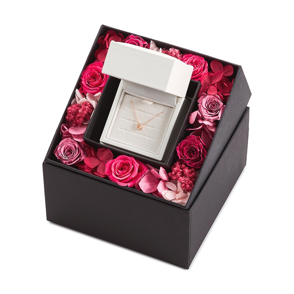 4℃×日比谷花壇 プリザーブドフラワーBOX ネックレスセット(K10ピンクゴールド)